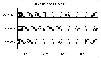 | 本調査の回答者である民生児童委員の性別は男女ほぼ半々であった。 |