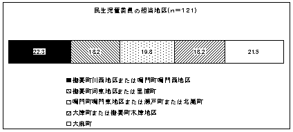 | 回答者の担当地区は、5地区ほぼ2割ずつで均等に分布している。 |