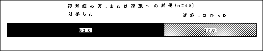 | 認知症高齢者の方、または家族の方へ対処したのは全体の63%と、半数を超えていた。 |