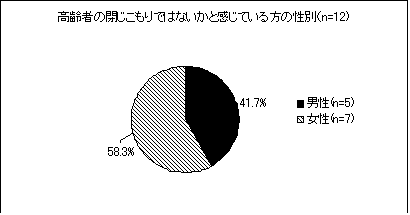 | 閉じこもりでないかと思われる12事例の性別は、男性が4割、女性が6割であった。 |
