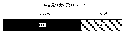 | 情報提供の後、成年後見制度を利用したかとの質問に対しては、3名が「利用を検討したが、実際には利用しなかった」と回答し、残りの1名は無回答であった。 |