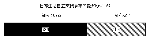 | 社会福祉協議会が実施している、日常生活自立支援事業を知っていたのは全体の約6割であった。 |